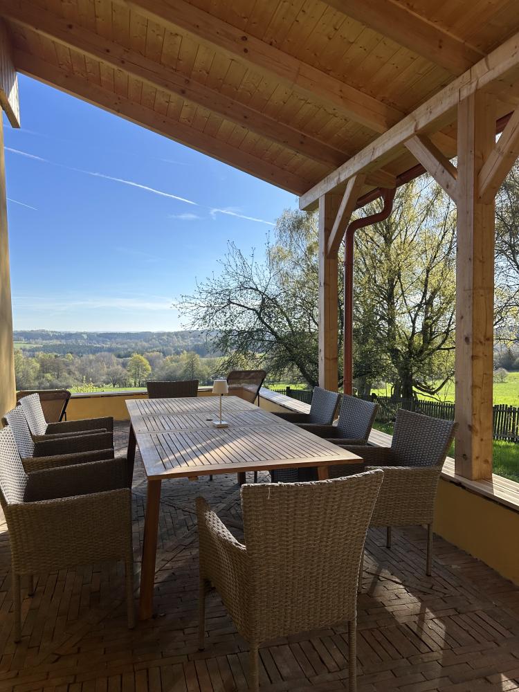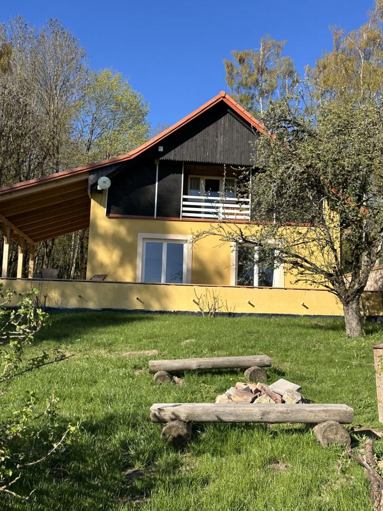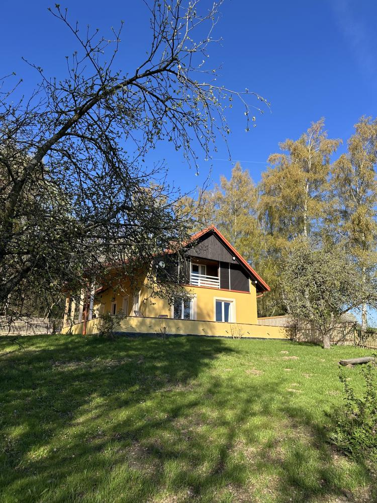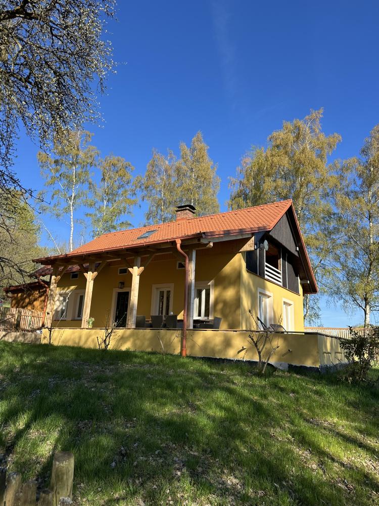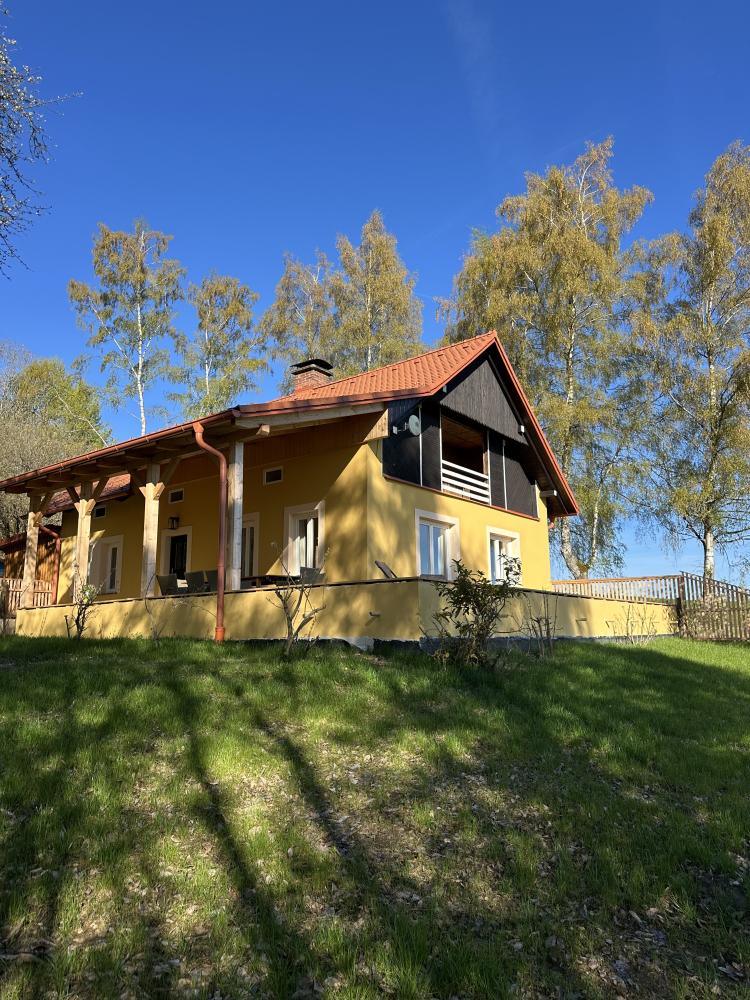Das Ferienhaus mit großem, umzäunten Garten und herrlichem Blick auf die Umgebung befindet sich am Rande des Dorfes Milíře bei Tachov. Großes Esszimmer mit Esstisch für 8 Personen, Kaminofen und voll ausgestatteter Küchenzeile mit Herd, Backofen, Mikrowelle, Kaffeemaschine, Kühlschrank mit Gefrierfach, Wasserkocher und Geschirrspüler. Wohnzimmer mit Sitzecke, LCD-Fernseher und Kamin. Vier Schlafzimmer mit je zwei Betten. Erstes Badezimmer mit Badewanne,