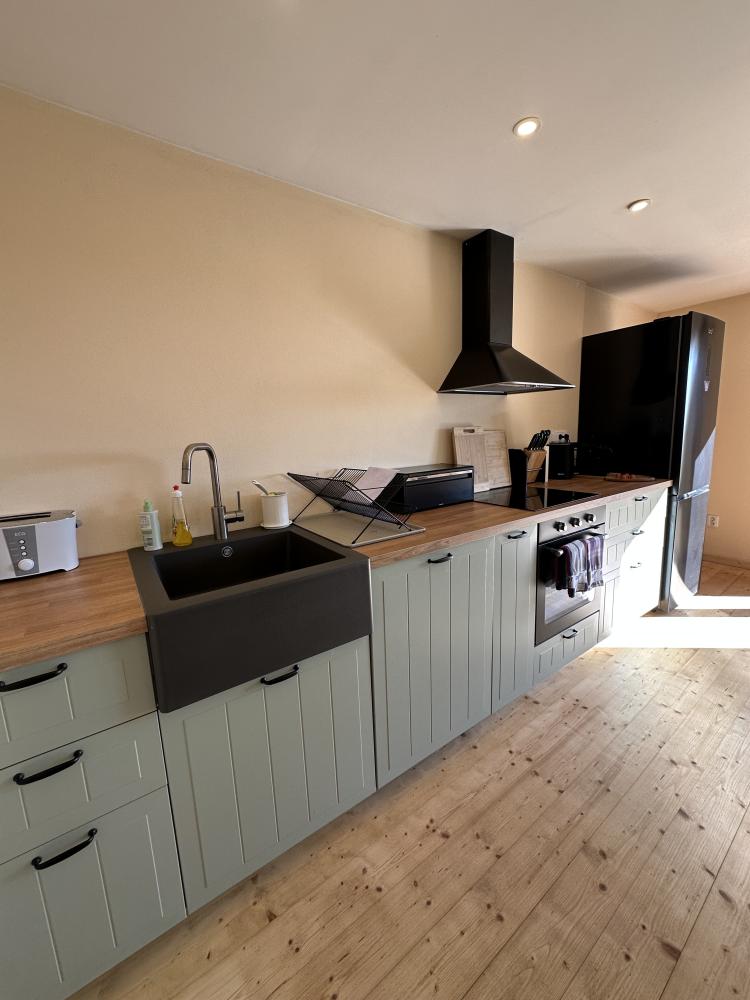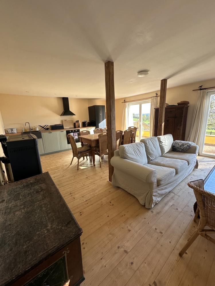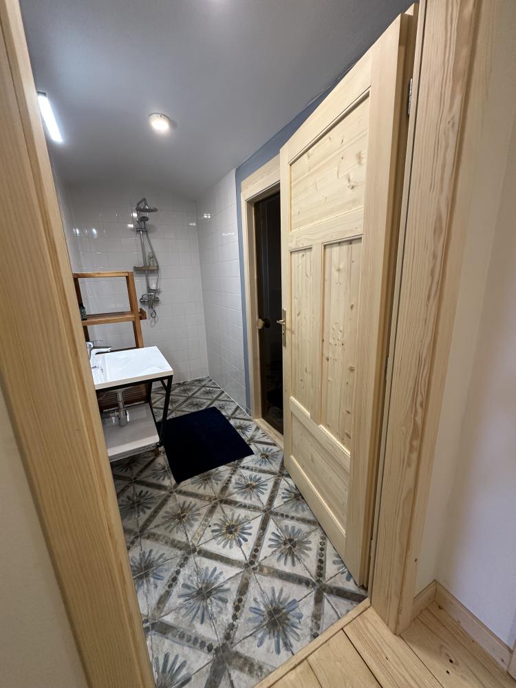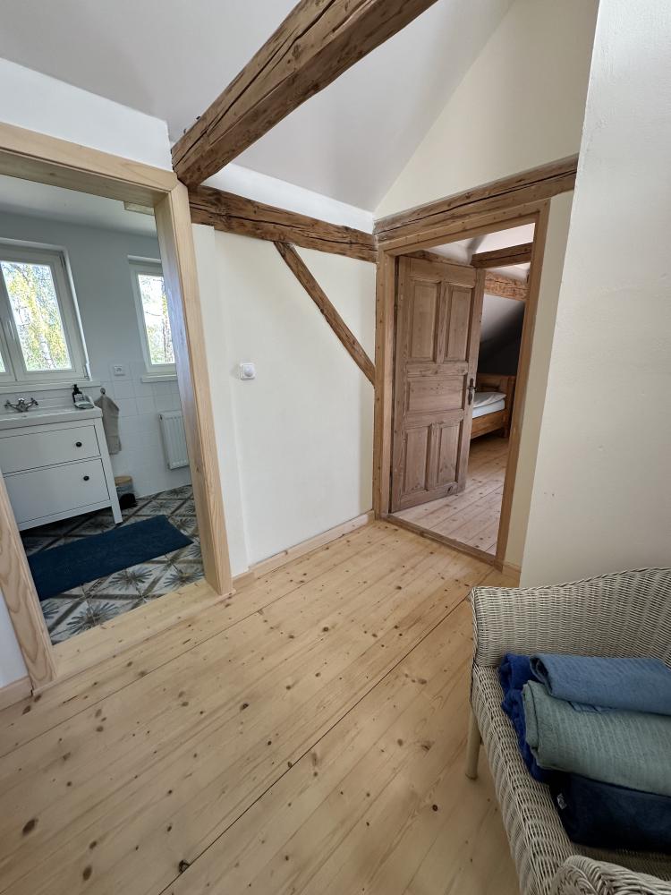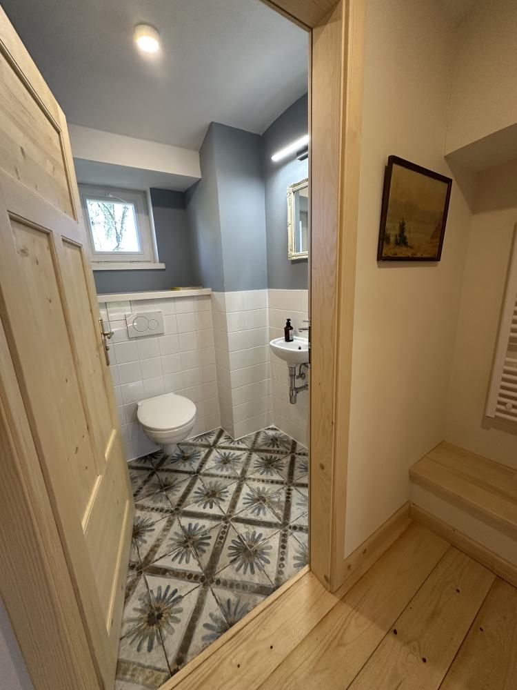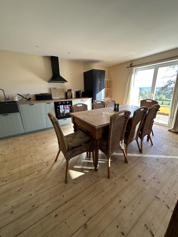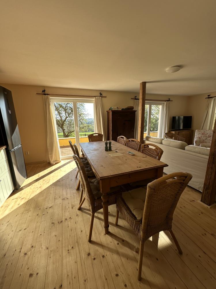 Das Haus Hrušeň in Milíře ist die ideale Wahl für alle, die eine ruhige und komfortable Unterkunft in der malerischen Landschaft in der Nähe von Tachov suchen. Geräumiges Wohnzimmer mit offener Küche, von dem aus man durch französische Fenster auf die Terrasse gelangt. Küchenzeile mit Kochfeld, Backofen, Wasserkocher, Kaffeemaschine, Toaster, Kühlschrank mit Gefrierfach und Geschirrspüler. Badezimmer mit Dusche, Waschbecken und